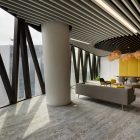 Bu projenin baza bölümünün lineer ahşap baffle asma tavan ve giriş hol metal tavan uygulamasını yaptık.